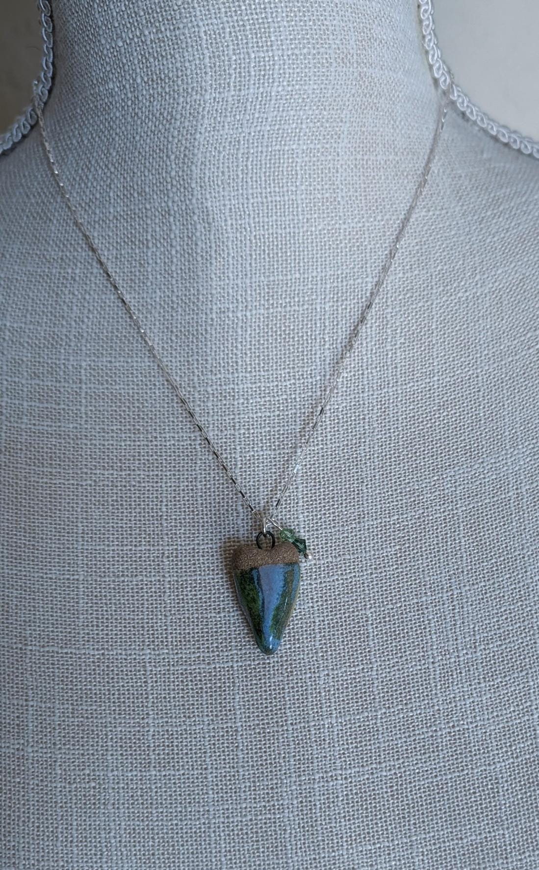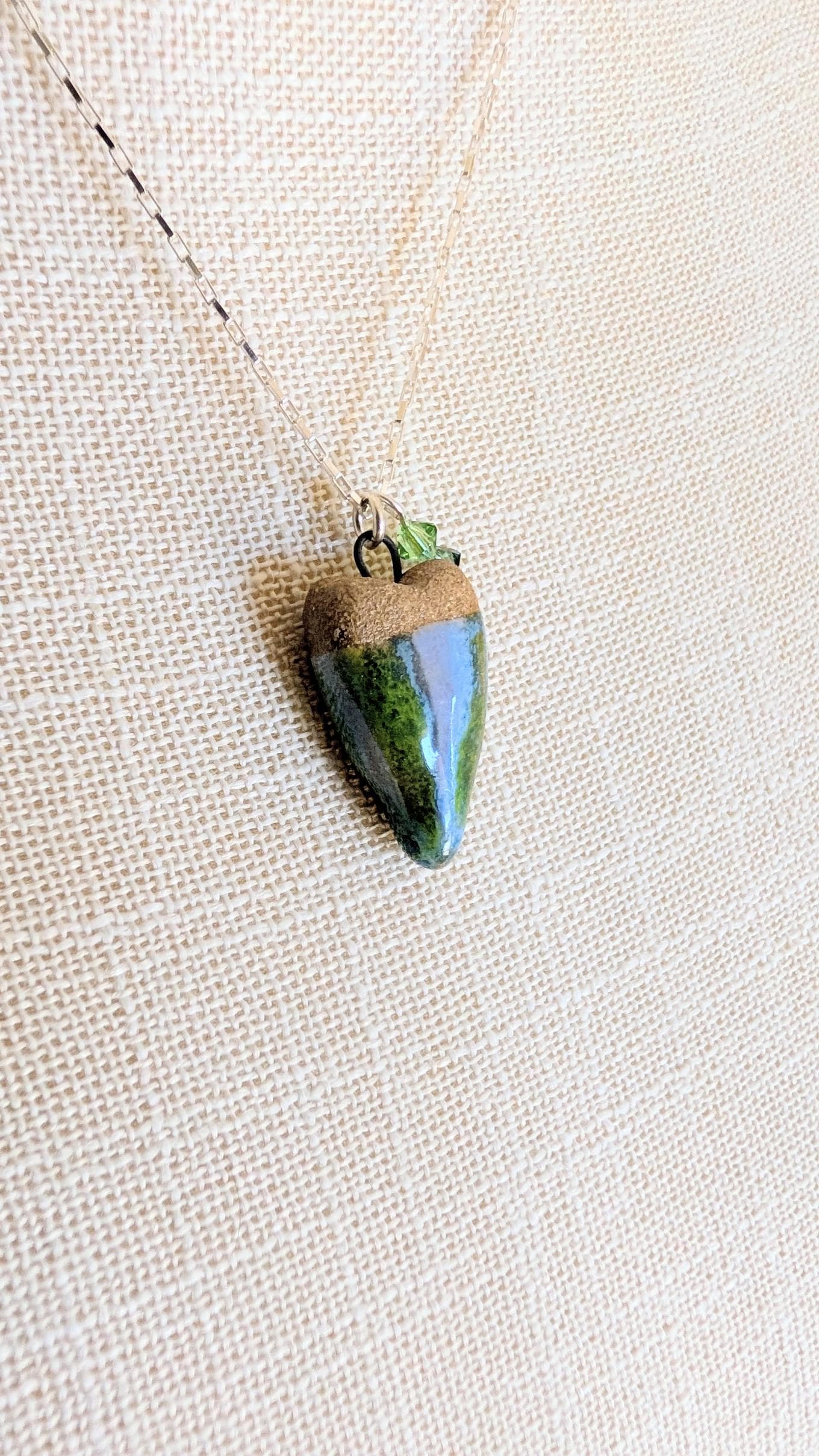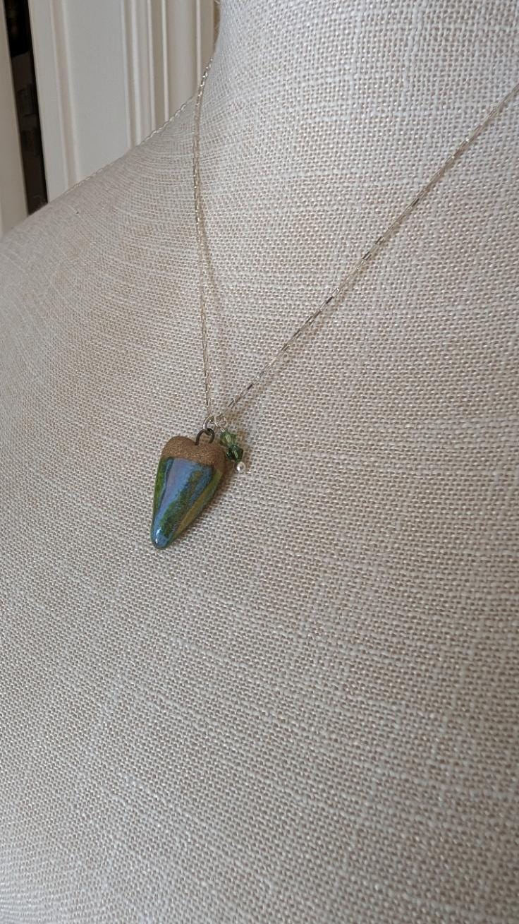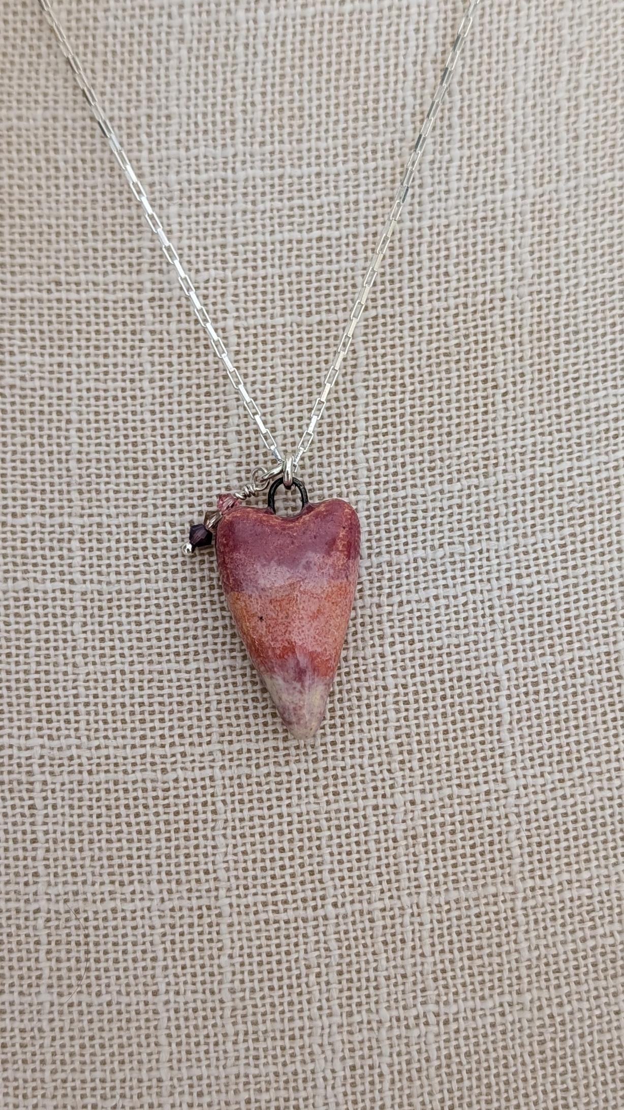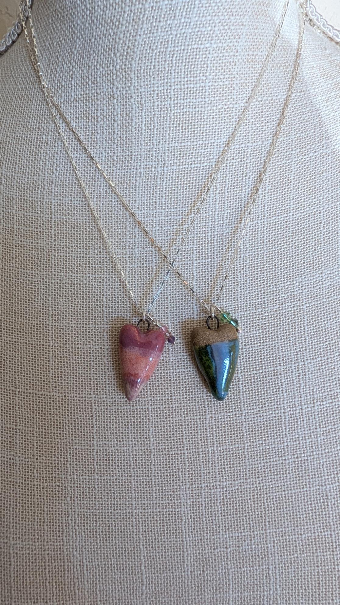 Adorable, petite Gaea ceramic hearts. (Gaea is the name of the Greek goddess "Mother Earth") Each with a coordinating crystal. All with sterling silver chain and components.
