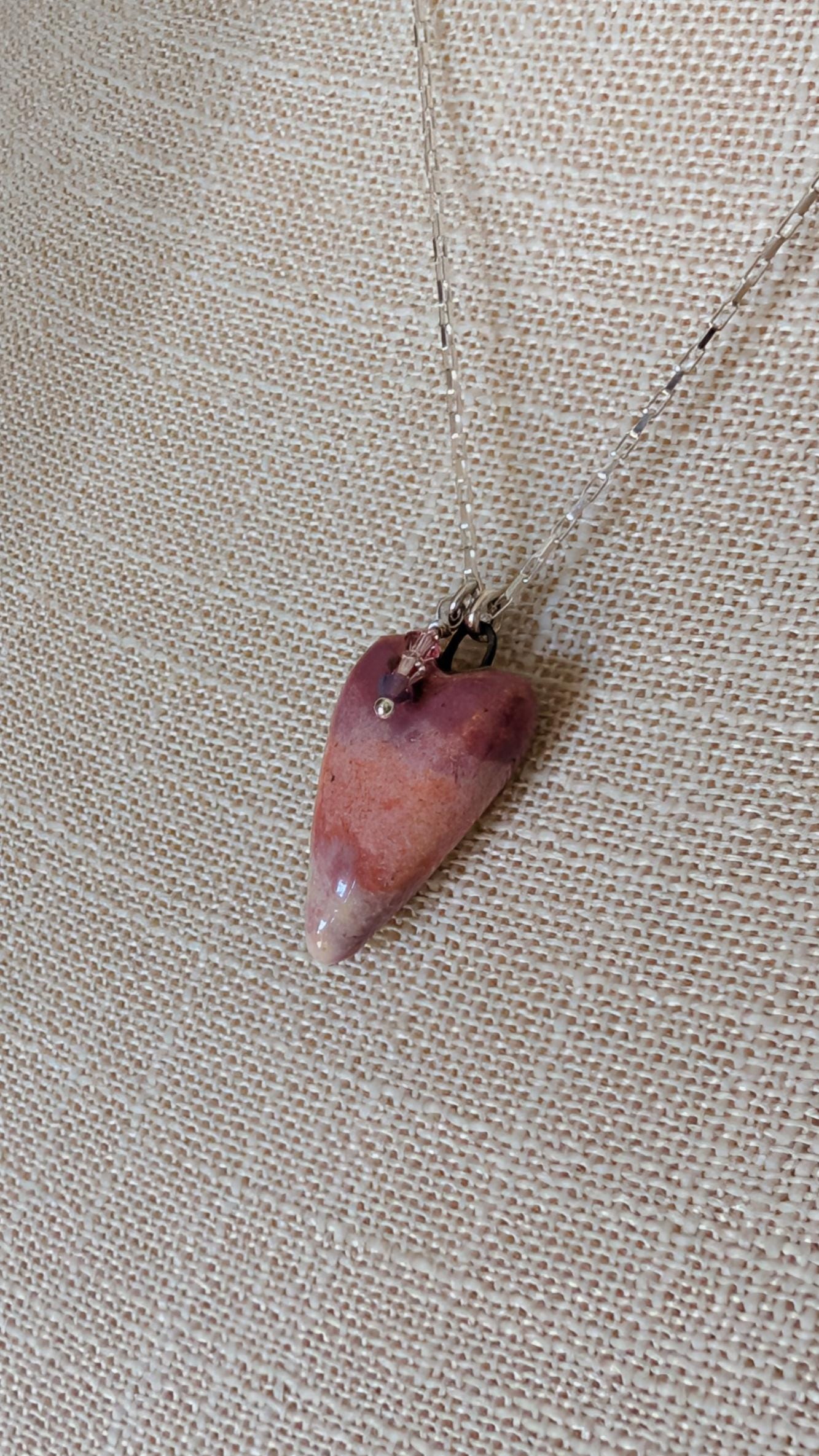 Gaea Petite Ceramic Heart Necklace: Pink or Green ombre with coordinating accents!Sterling Silver chain.