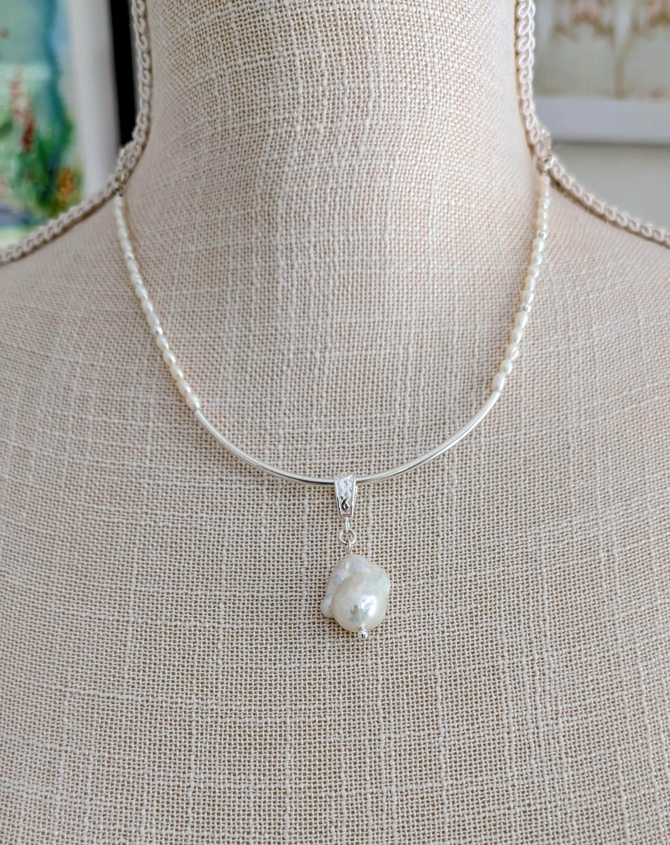 Baroque and Freshwater pearls. Wear two different ways. With or without the center Baroque! Elegant and simple!
