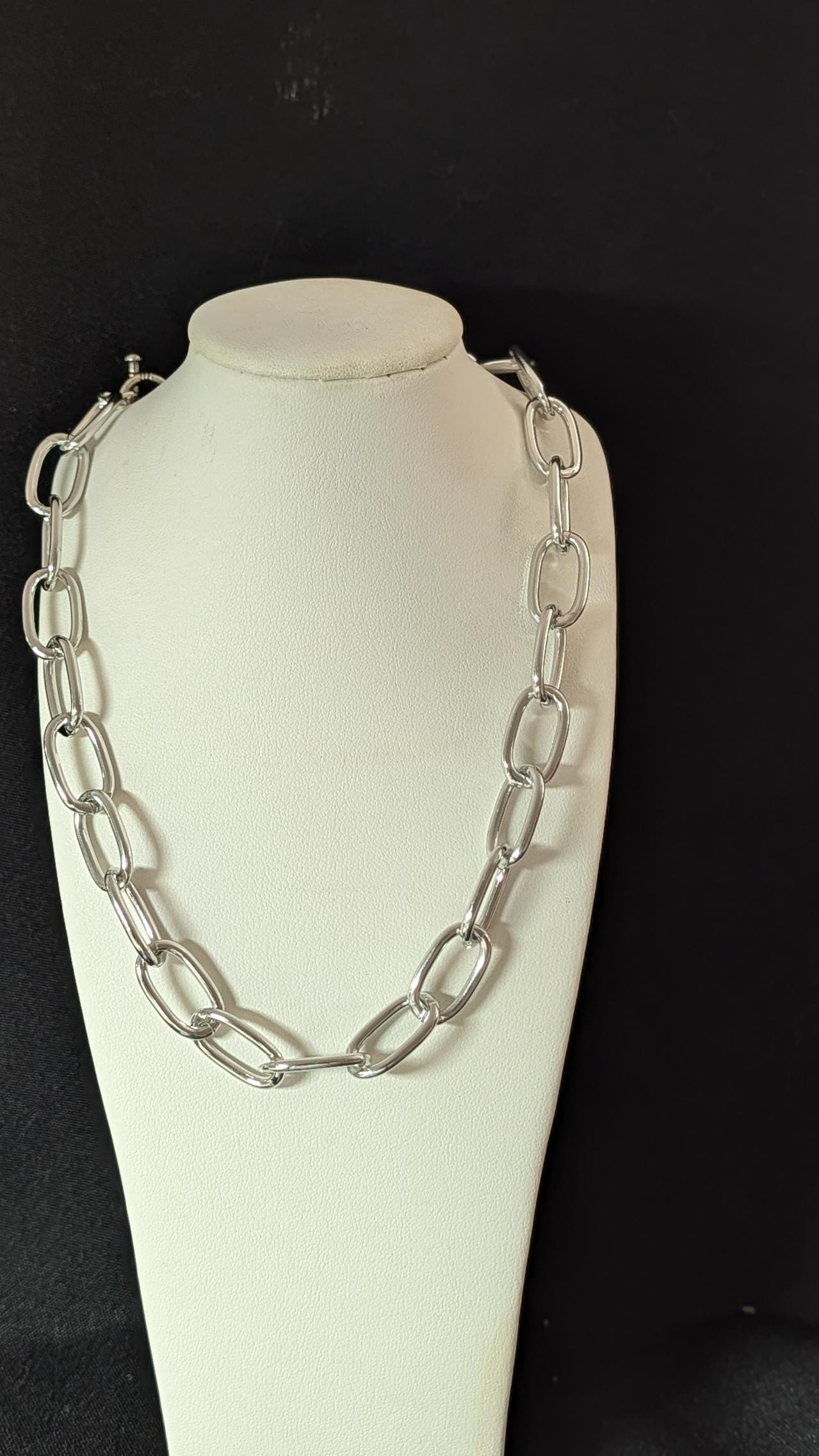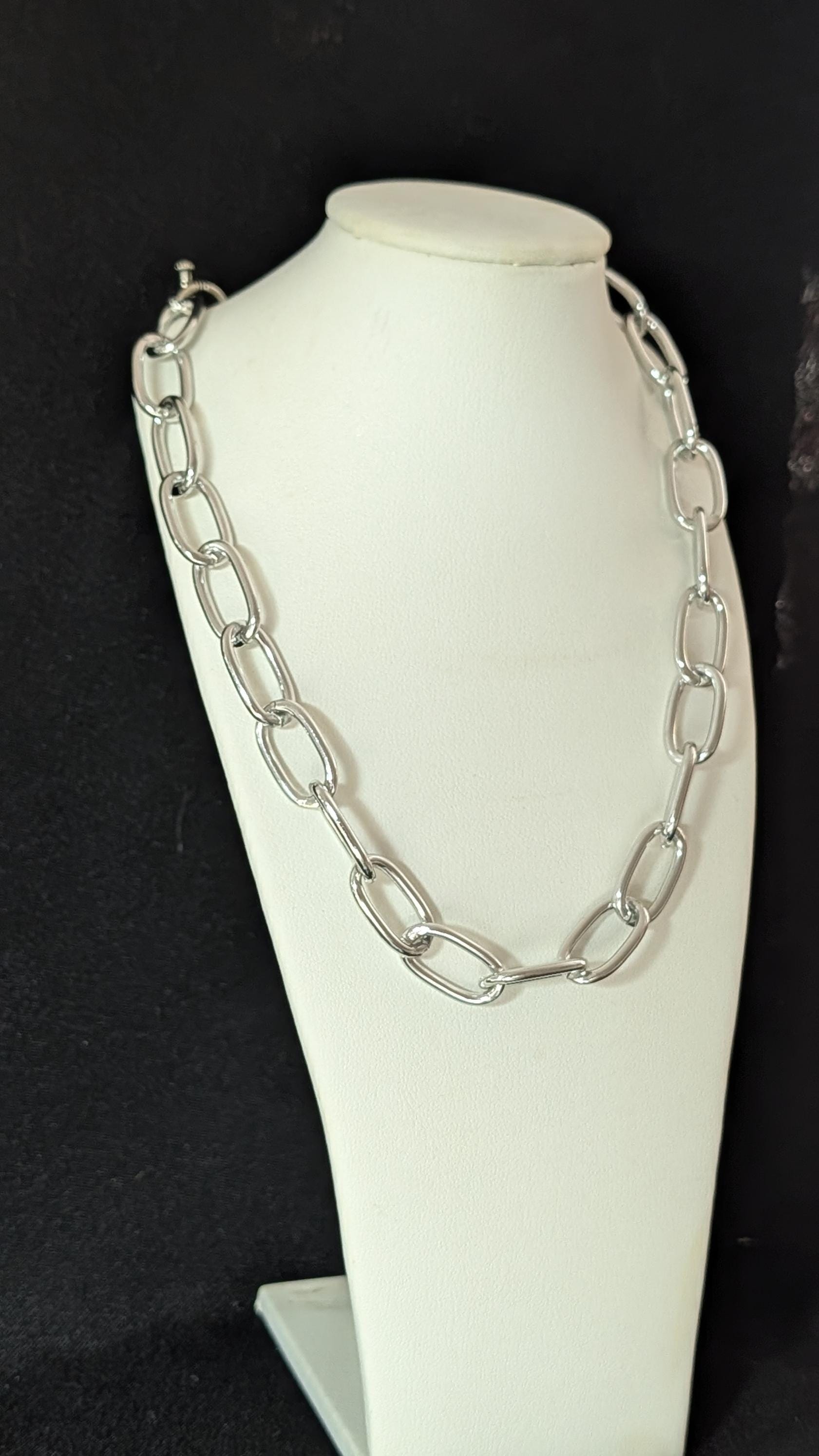 NEW! Lightweight Aluminum Link Necklace: Single Loopy chain statement jewelry. Does NOT tarnish. Plated toggle clasp.