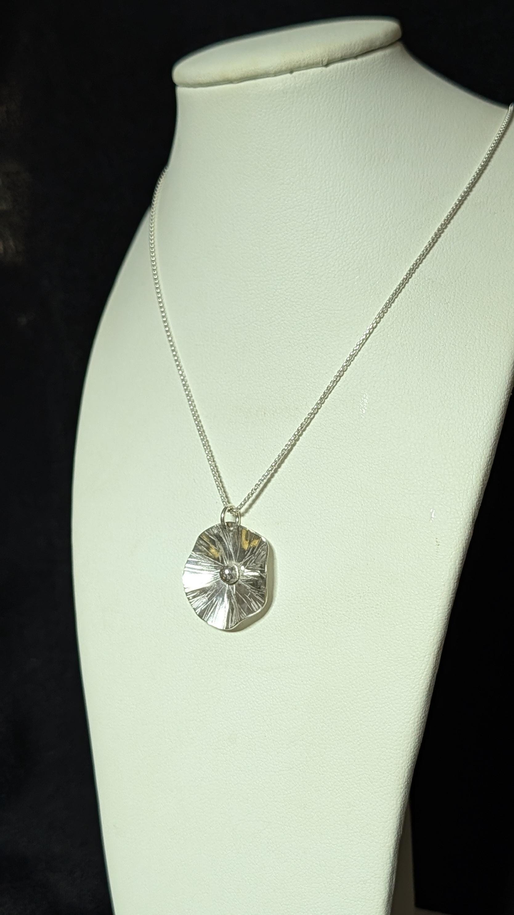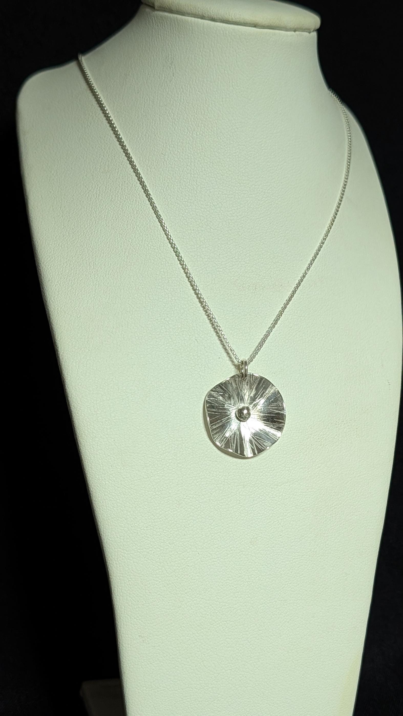 POPPY Textured Sterling Silver circle with beads for stamins Necklace - 18" Chain Very comfortable and lightweight.
