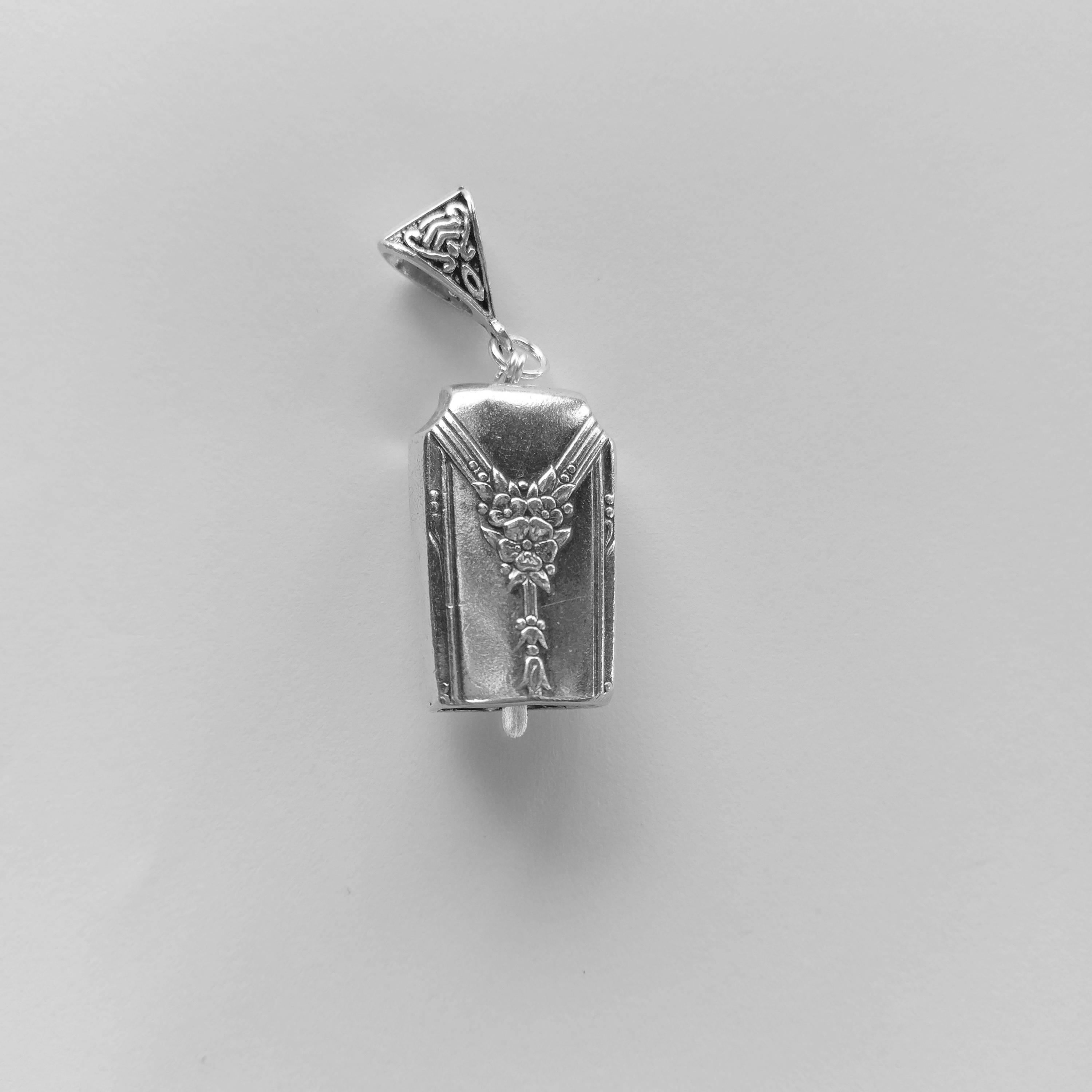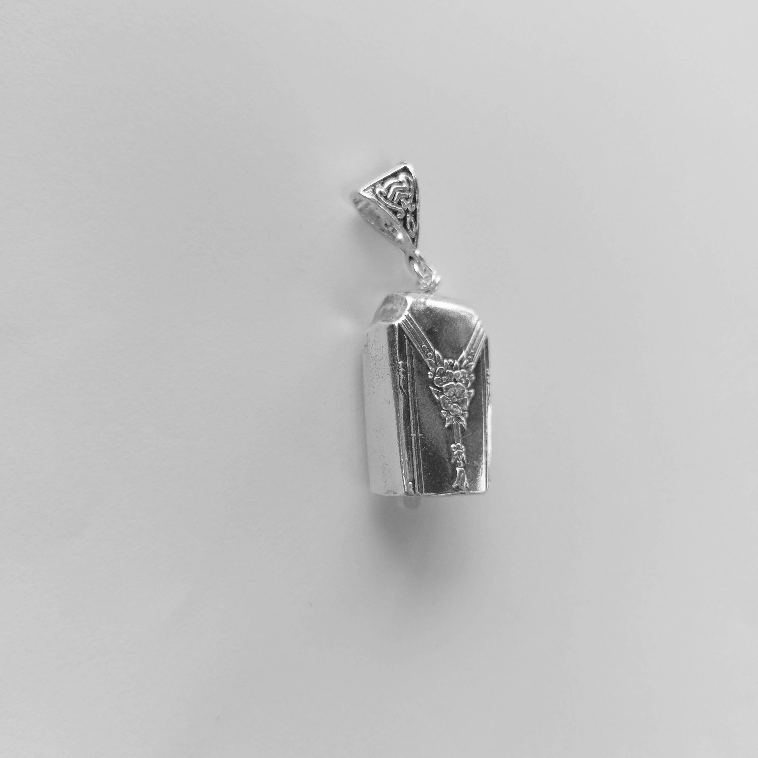 Milady 1940 recycled silverware. All components individually measured and cut to assure a pleasant ringing sound. Chain is 24" stainless steel. It can easily slide off chain and be worn on your own shorter chain or cotton cording. Very versatile.