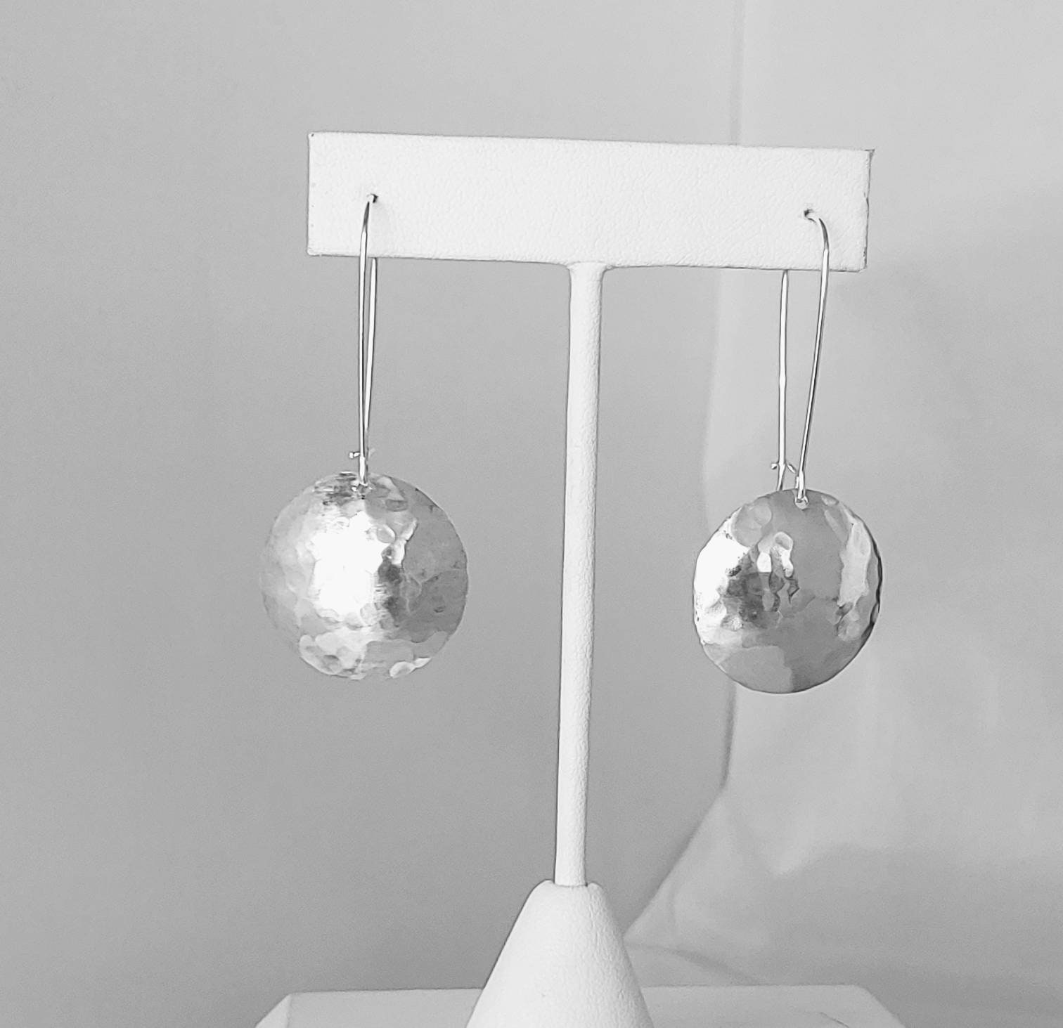 Silk textured discs on kidney wire earrings. Stunning 2 1/4" total drop 3/4"wide discs.